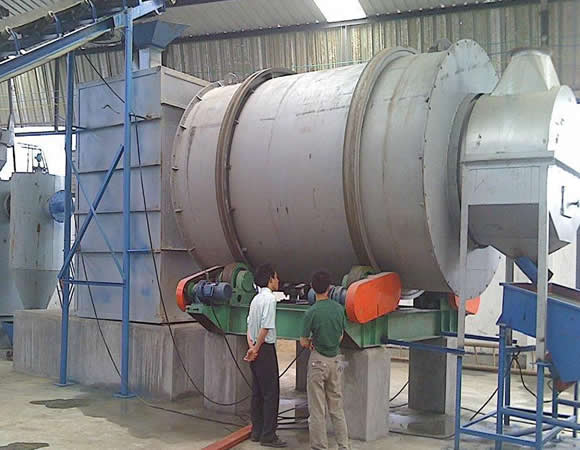 燃料可適應(yīng)白煤、煙煤、煤矸石、油、汽,能烘20-40mm以下塊料、粒料、粉狀物料。比單筒烘干機(jī)減少占地面積60%左右、土建投資降低50%左右,方便安裝。出料溫度小于60度,可直接進(jìn)料庫,無需進(jìn)冷卻棚冷卻。