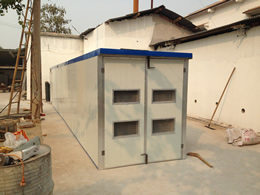 該干燥設(shè)備采用的是連續(xù)性烘干作業(yè),主要有干燥室、烘干車、料盤、供風(fēng)系統(tǒng)、熱風(fēng)爐、自動電控系統(tǒng)等構(gòu)成。干燥室采用金屬保溫板或磚混結(jié)構(gòu),烘干盤采用金屬或其他材料制作。