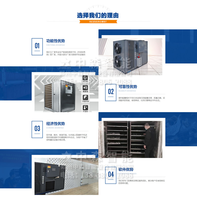 【產(chǎn)品介紹】智能化熱泵烘干機(jī)首選中森智能專注于烘干機(jī)研發(fā)、生產(chǎn)和銷售為一體的專業(yè)生產(chǎn)商以及全方位系統(tǒng)解決供應(yīng)廠家。全智能化控制系統(tǒng),機(jī)組可分多個時間段隨意設(shè)置,來滿足每個用戶的需求。