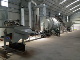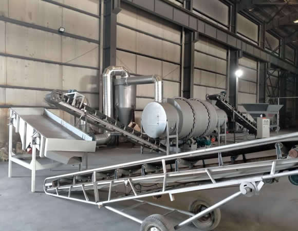 在筒體內(nèi)的石英砂會被內(nèi)部安裝的擋板,統(tǒng)稱揚料板揚起,由于揚料板設(shè)計的形式多樣,石英砂會在不同的高度被揚起,形成錯落的石英砂流,高溫氣流就從其中穿過,增加了與石英砂的接觸時間和接觸面,使內(nèi)部的水分干燥更快,如此反復(fù)循環(huán)幾個回合之后,石英砂與水分徹底分離,水分受熱在筒體的頂部被風(fēng)機抽出,干燥的石英砂則從下料口出料。被抽出的高濕氣體種會含有一些石英砂粉末顆粒,排放到環(huán)境種會用污染,一般需要經(jīng)過旋風(fēng)除塵器過濾下即可。