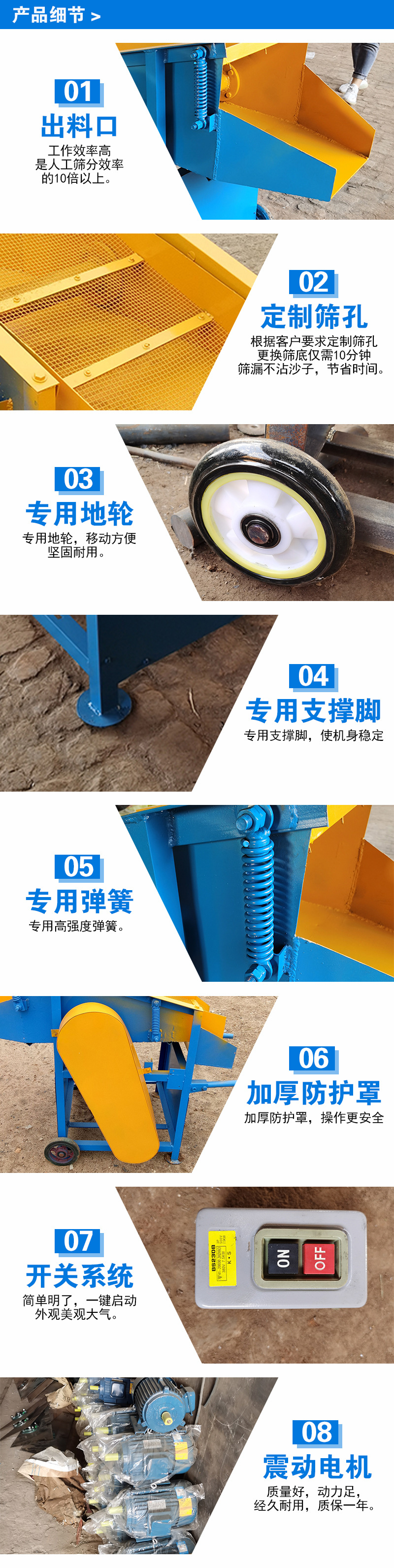 2、電動篩土機在運行時不準(zhǔn)檢修、注油、調(diào)整、觸摸。設(shè)備檢修或清理時應(yīng)關(guān)閉(切斷)所有總、分電源,并掛攀上禁止合閘,有人工作 - 示 - 。鏟車裝卸砂時,不準(zhǔn)撞擊土壤篩土機,放料時應(yīng)緩慢均勻給料,不準(zhǔn)猛砸,以免設(shè)備發(fā)生變形影響使用。雨天應(yīng)停止工作,對電機、閘箱應(yīng)做防水處理,以免造成安全事故.