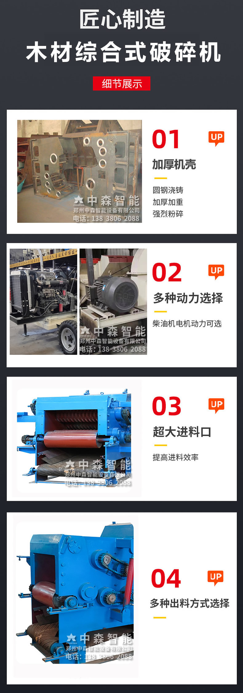 【產品介紹】中森智能專注木材綜合式破碎機20余年,從研發(fā)設計生產到銷售,現(xiàn)已形成一體化制造商以及售后服務商;木材邊角料破碎機是加工生物質顆粒,造紙,木炭,多種板材,食用菌,生物發(fā)電,園林,木屑,有機肥等農,林,工業(yè)生產配套設備.可粉碎多種雜木,木材,木頭,模板,邊角料,樹枝,竹子,園林綠化,食用菌等物料。